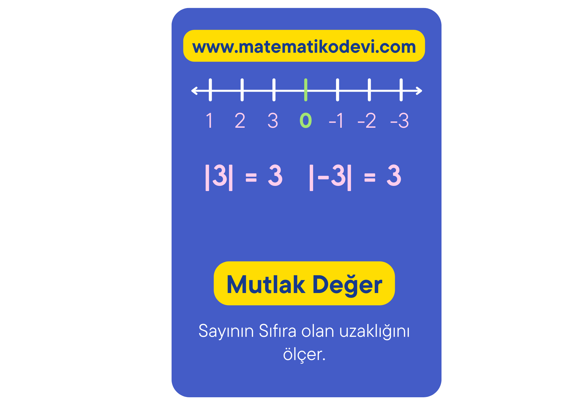 Not: Uzaklık negatif olamayacağı için 0 hariç tüm sayıların mutlak değeri pozitiftir.