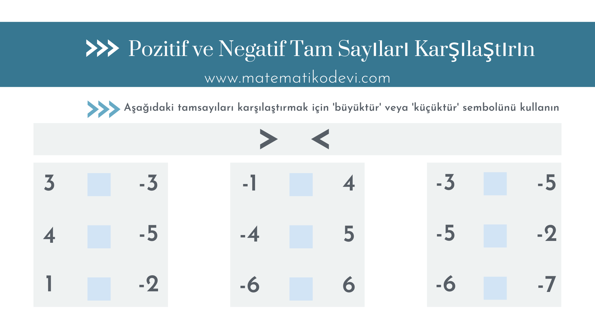 Örneğin +4 tam sayısı +3 tam sayısından büyüktür. +4’ün değeri +3’ün değerinden büyüktür.