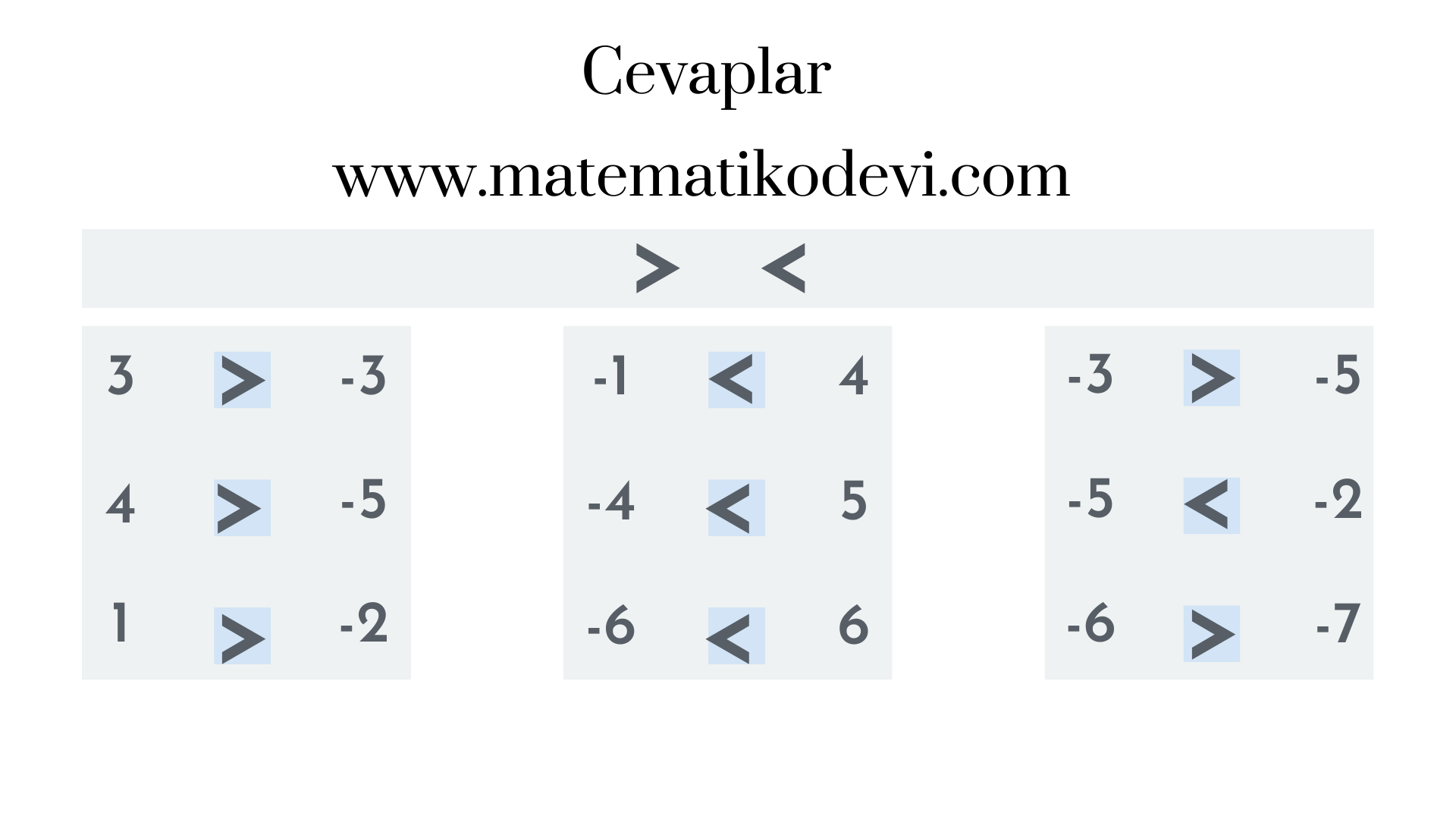 ➡️ Sıfır negatif tam sayılardan büyüktür.